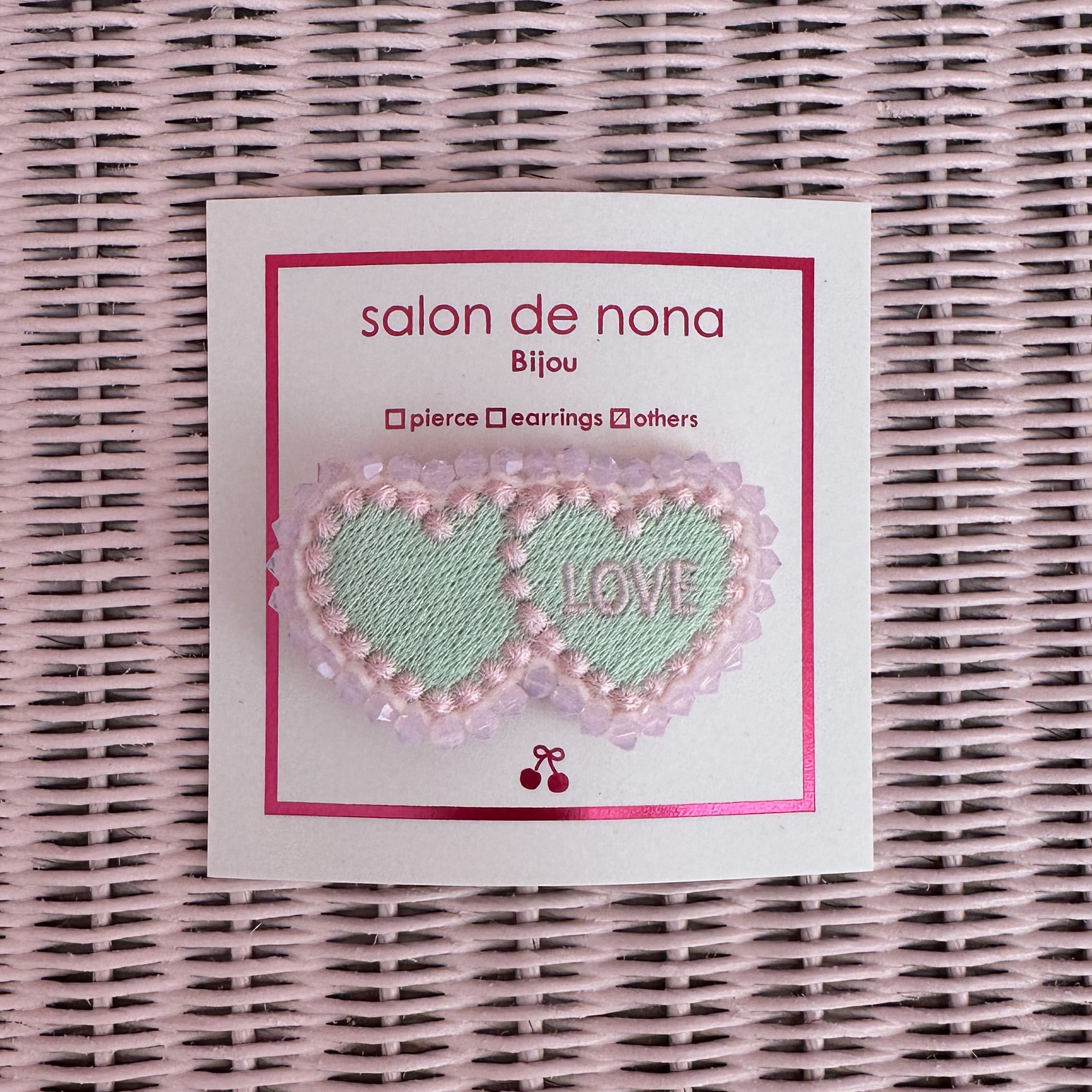 ダブルハート刺繍 ヘアクリップ