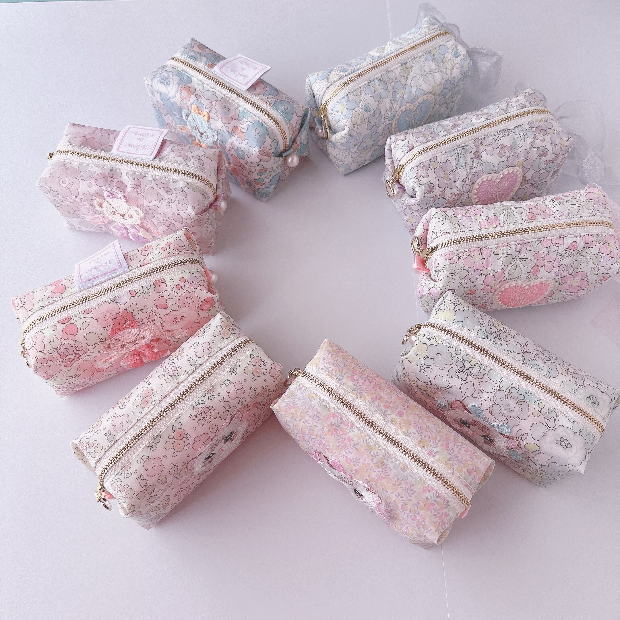 可愛らしい小花柄のリバティ生地にオリジナルのラグドール刺しゅうをした猫好きさんにピッタリなポーチ。