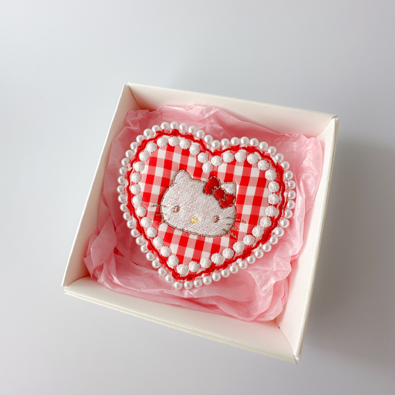 ハートモチーフにキャラクター刺繍を配したクリップタイプのアクセサリー