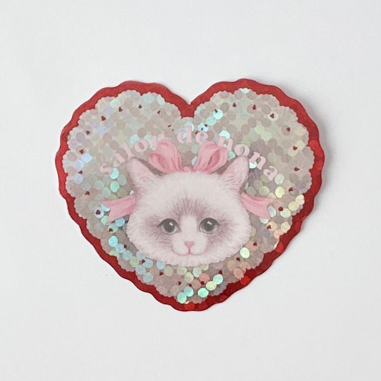 赤い縁のハートは、きらっと光を受けるホログラム素材。